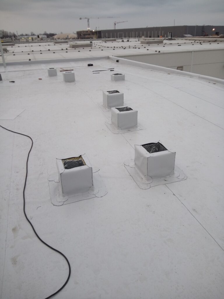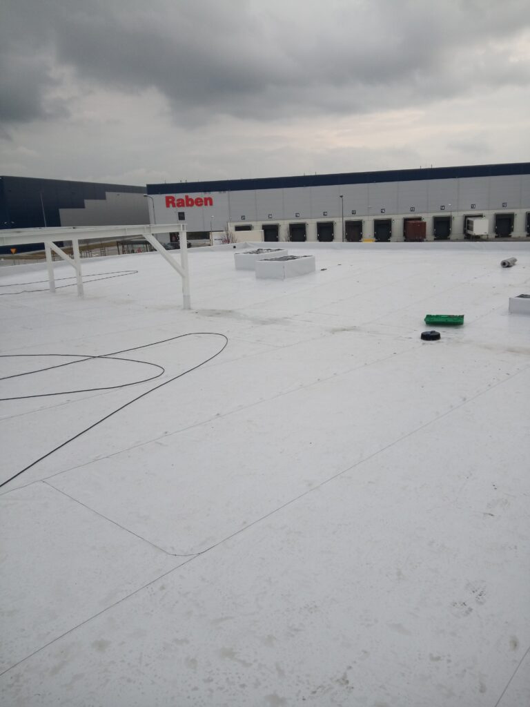 Montaż hydroizolacji – membrana PVC Bauder.